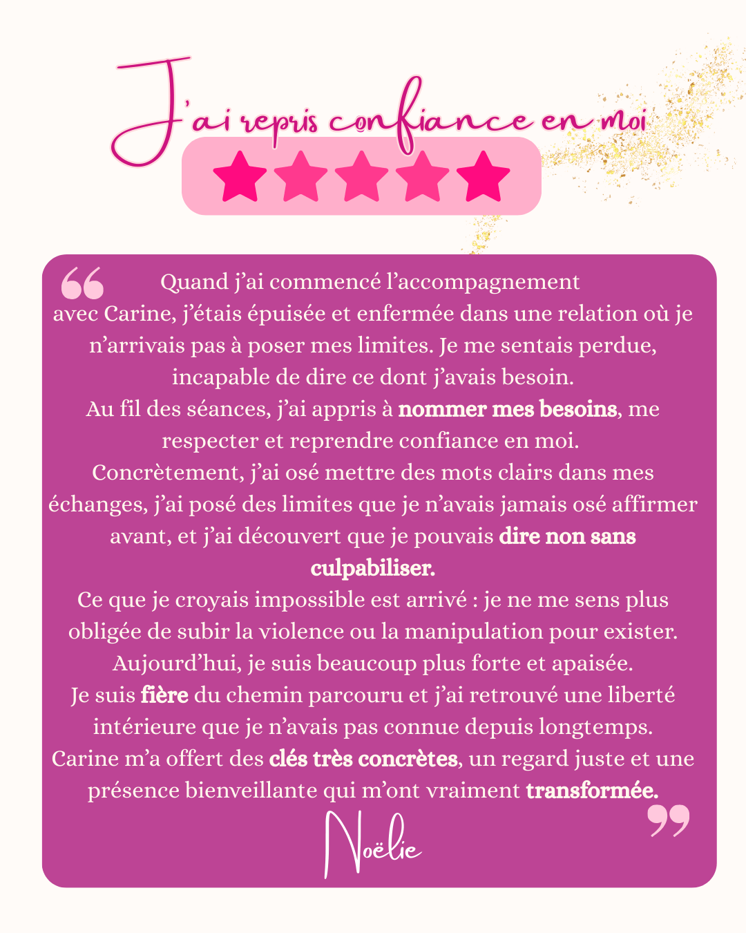 Mais Ă partir dâaujourdâhui, tu peux avancer avec soutien, retrouver ta confiance, et te sentir Ă ta place dans ta vie.