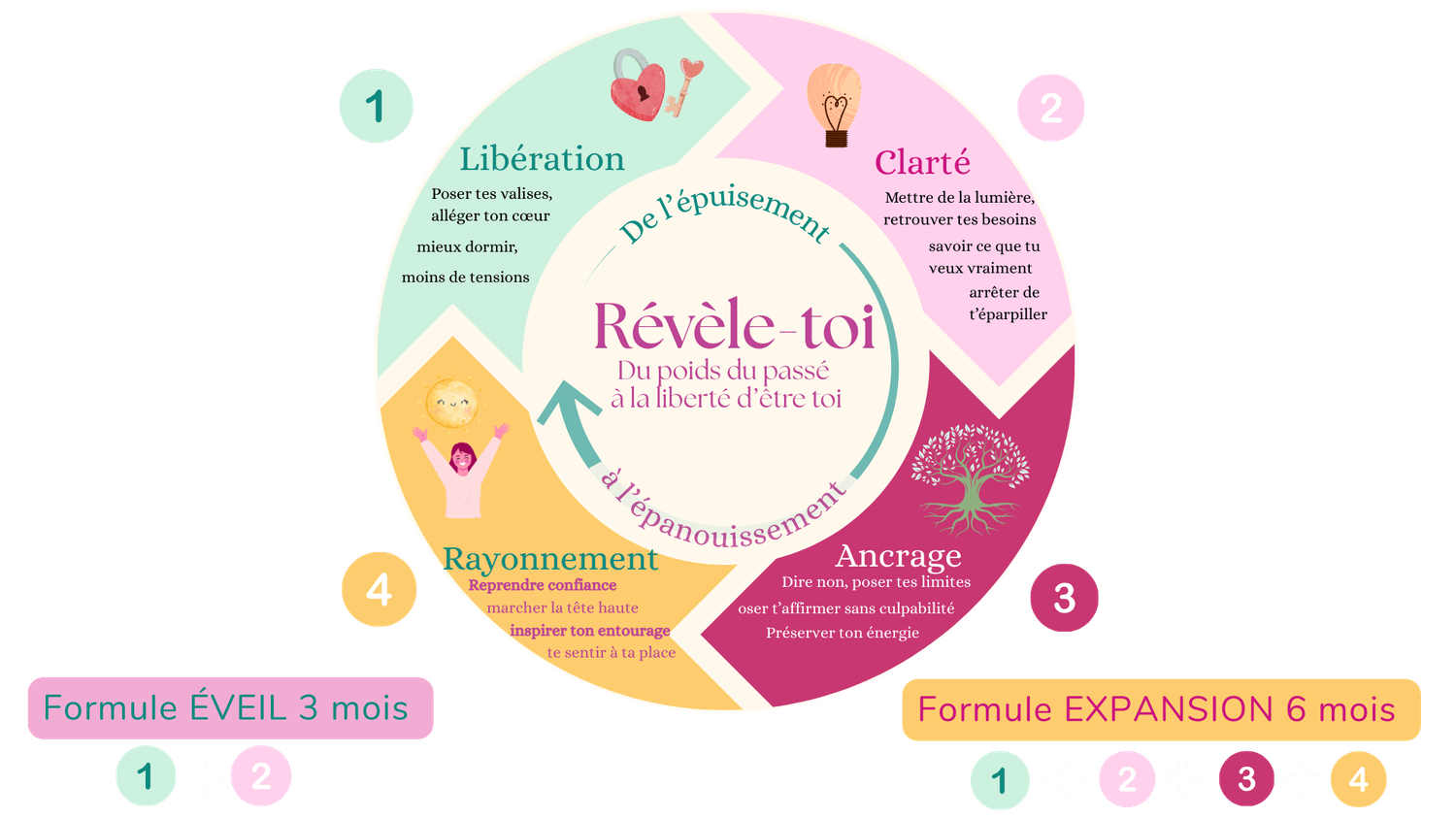 RĂVĂLE-TOI câest retrouver ton Ă©nergie, te libĂ©rer des schĂ©mas qui tâĂ©puisent et poser des limites saines pour vivre enfin pour toi.